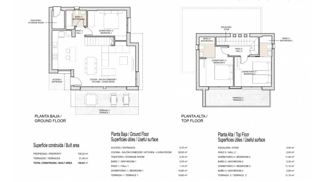 Denna villa med 3 sovrum ligger i området Los Montesinos, Costa Blanca. Tomten är helt omsluten av en mur som garanterar avskildhet. Stor skjutport för biltillträde till parkeringen. Korridor som leder till det stora vardagsrummet med öppen planlösning, med vardagsrum, matsal och kök med frukostbar och en rad moderna enheter. Stora skjutdörrar vetter mot terrassen på framsidan av villan, och ett andra set öppnar sig mot trädgården på baksidan av villan. Master bedroom med inbyggda garderober och intilliggande duschrum, utrustat med duschkabin, toalett och underdel. † Sovrum 2 (dubbel) med inbyggda garderober. Sovrum 3 (dubbel) med inbyggda garderober. Separat badrum med duschkabin, toalett och underdel. Liten invändig tvättstuga med plats för tvättmaskin. Externa trappsteg som leder till takterrassen. Möbler och hushållsapparater finns som tillval. Möjlighet att lägga till en 3x6 privat pool för en extra kostnad på €14 500.