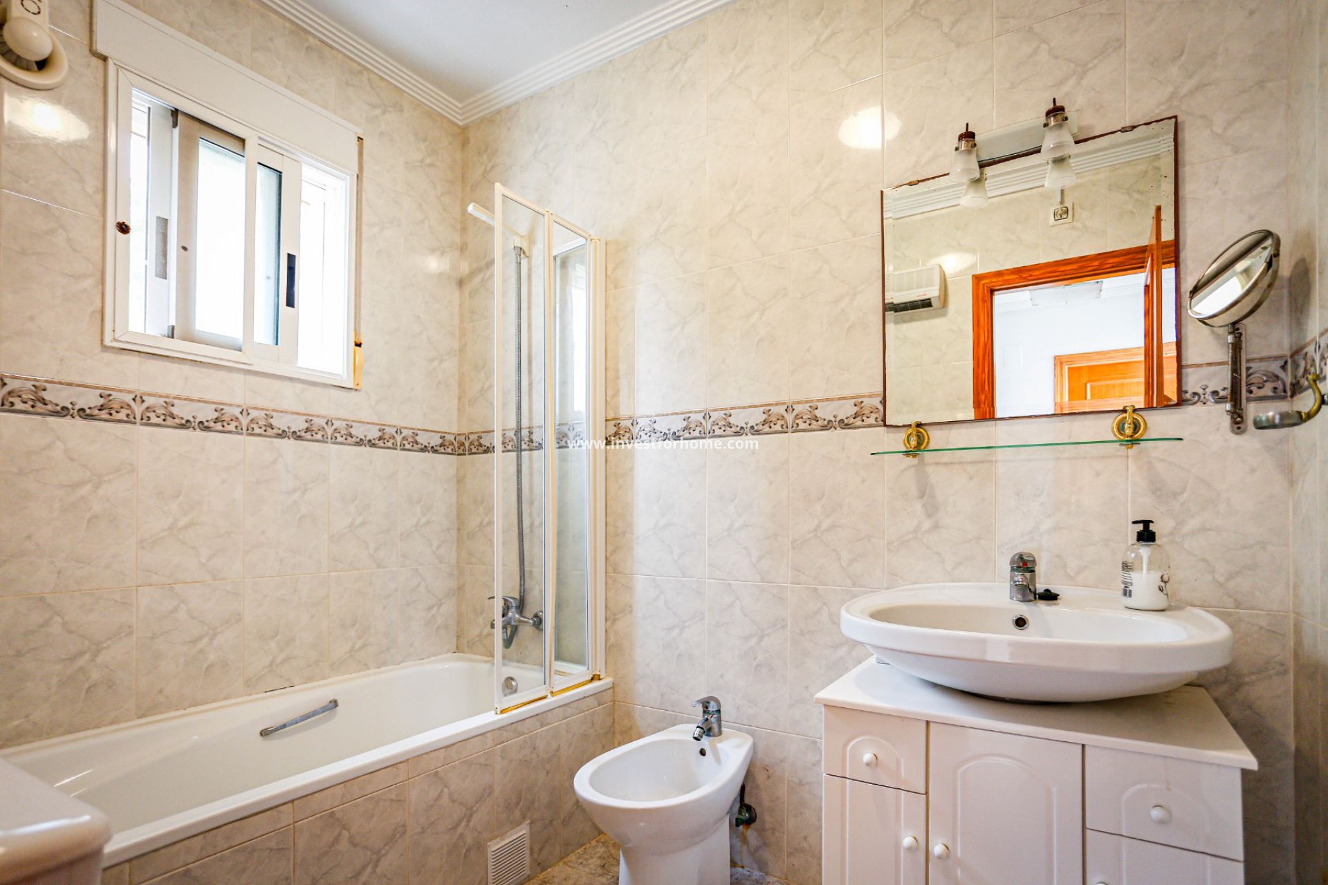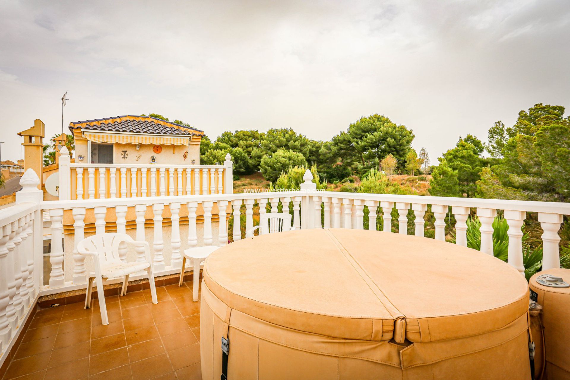 Vacker villa med tre sovrum belägen i Villamartin intill golfbanan, med utsikt och direkt tillgång till golfbanan genom huset. Från terrassen på rummen och solariet har du panoramautsikt över golfbanan och Medelhavet.