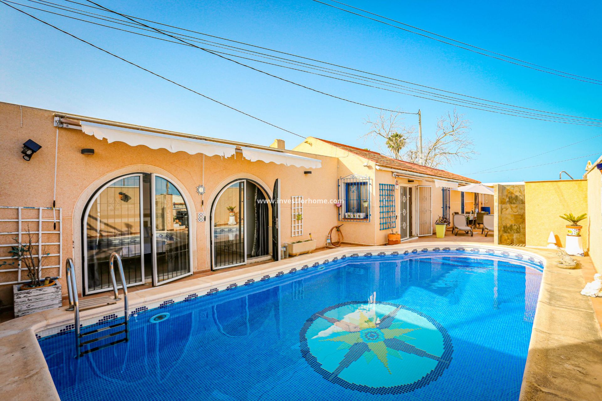 Fristående hus i provensalsk stil i perfekt skick i staden Los Montesinos. Den består av 3 sovrum vart och ett med eget badrum med badrum, ett stort matkök, ett vardagsrum och en vacker uteplats med privat pool. Huset säljs fullt utrustat. Det ligger i utkanten av staden Los Montesinos, i ett lugnt läge med mycket få nära grannar. Platsen är idealisk för året runt boende, längre semester och till och med säsongsuthyrning. Du kommer omedelbart att förföras av charmen i detta enplanshus. Den närmaste sandstranden vid Guardamar del Segura (Moncayo) ligger bara 6 km bort och lokala butiker mindre än 1 km bort.