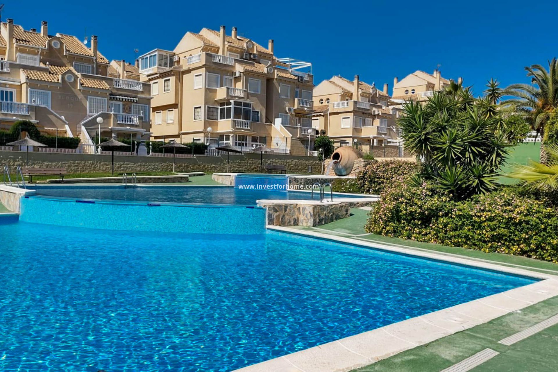En av höjdpunkterna i detta bungalowhus är dess närhet till den gemensamma poolen. Poolen är ett bra ställe att tillbringa tid med vänner och familj på, eller att bara koppla av och njuta av solen. Den gemensamma poolen är också ett bra sätt att hålla sig aktiv och njuta av det vackra vädret i Torrevieja.
